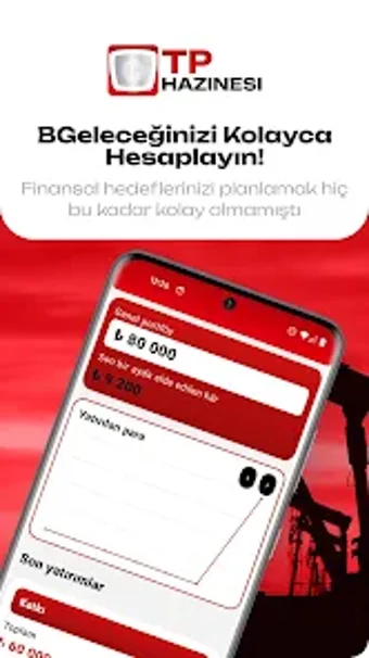 Met de 'Ekle' sectie kunnen nieuwe investeringen eenvoudig worden toegevoegd door naam, looptijd, bedrag en rente in te voeren. Tpao hazinesi berekent automatisch de verwachte opbrengst op basis van eenvoudige rente en voegt dit toe aan het totaal. De 'Yatırımlar' sectie toont elke positie duidelijk in een kaartformaat, inclusief bedrag, winst, percentage en looptijd. De interface is eenvoudig en overzichtelijk, met een rode en witte themakleur, en is ideaal voor iedereen die zijn investeringen in Turkse lira wil volgen zonder complexe tabellen.